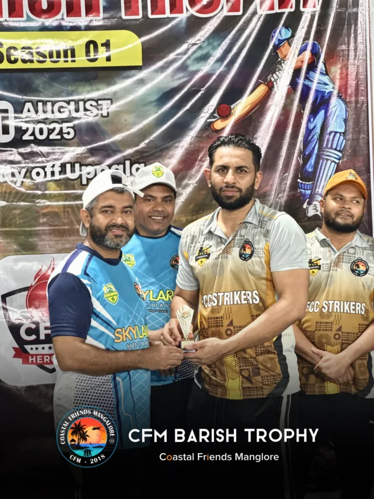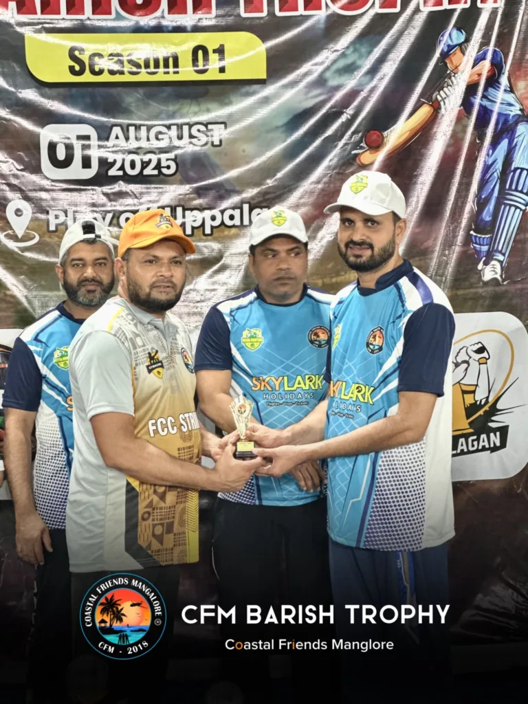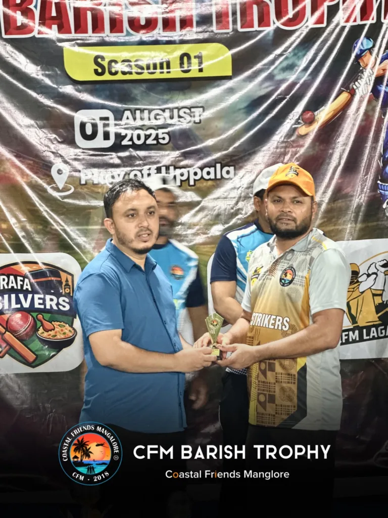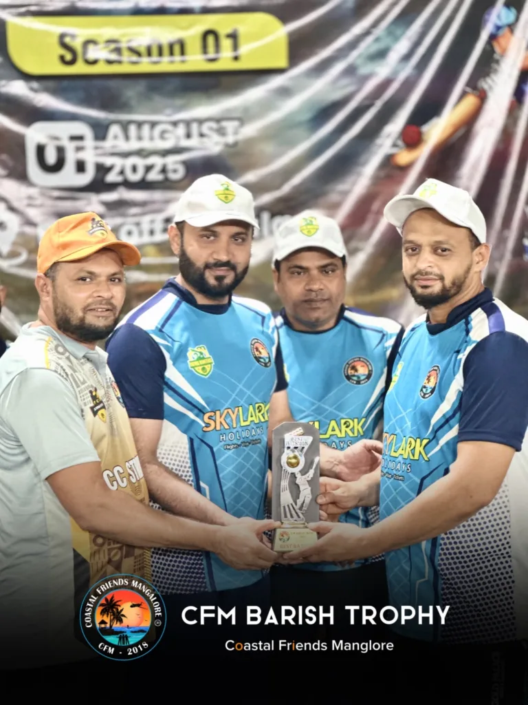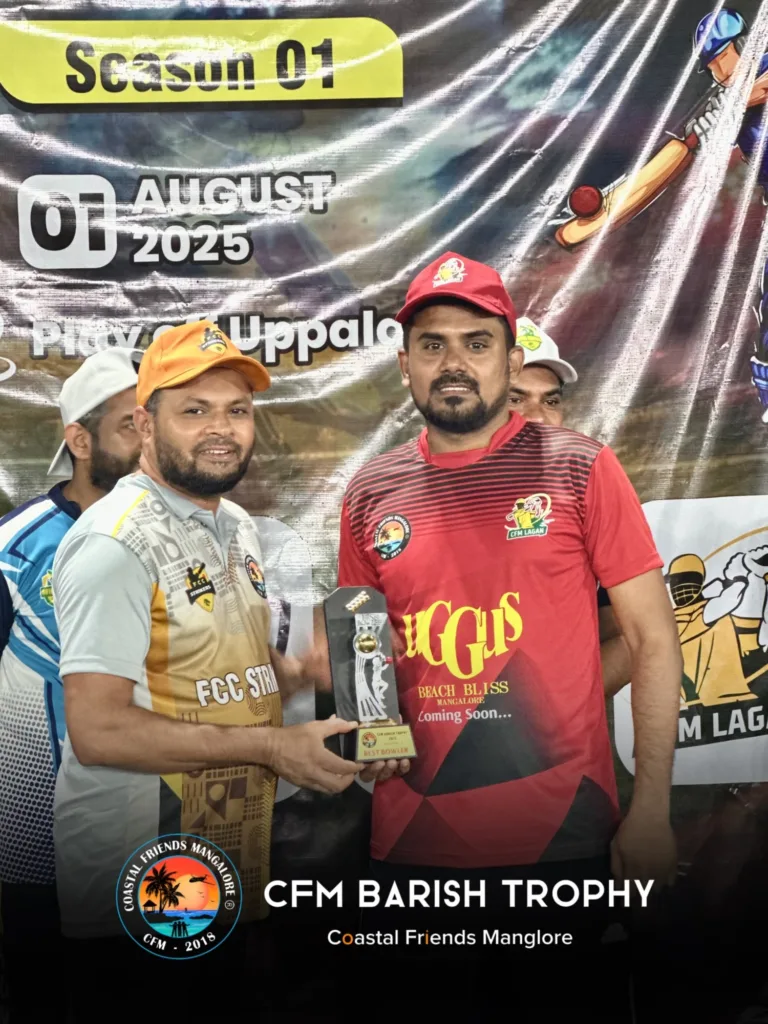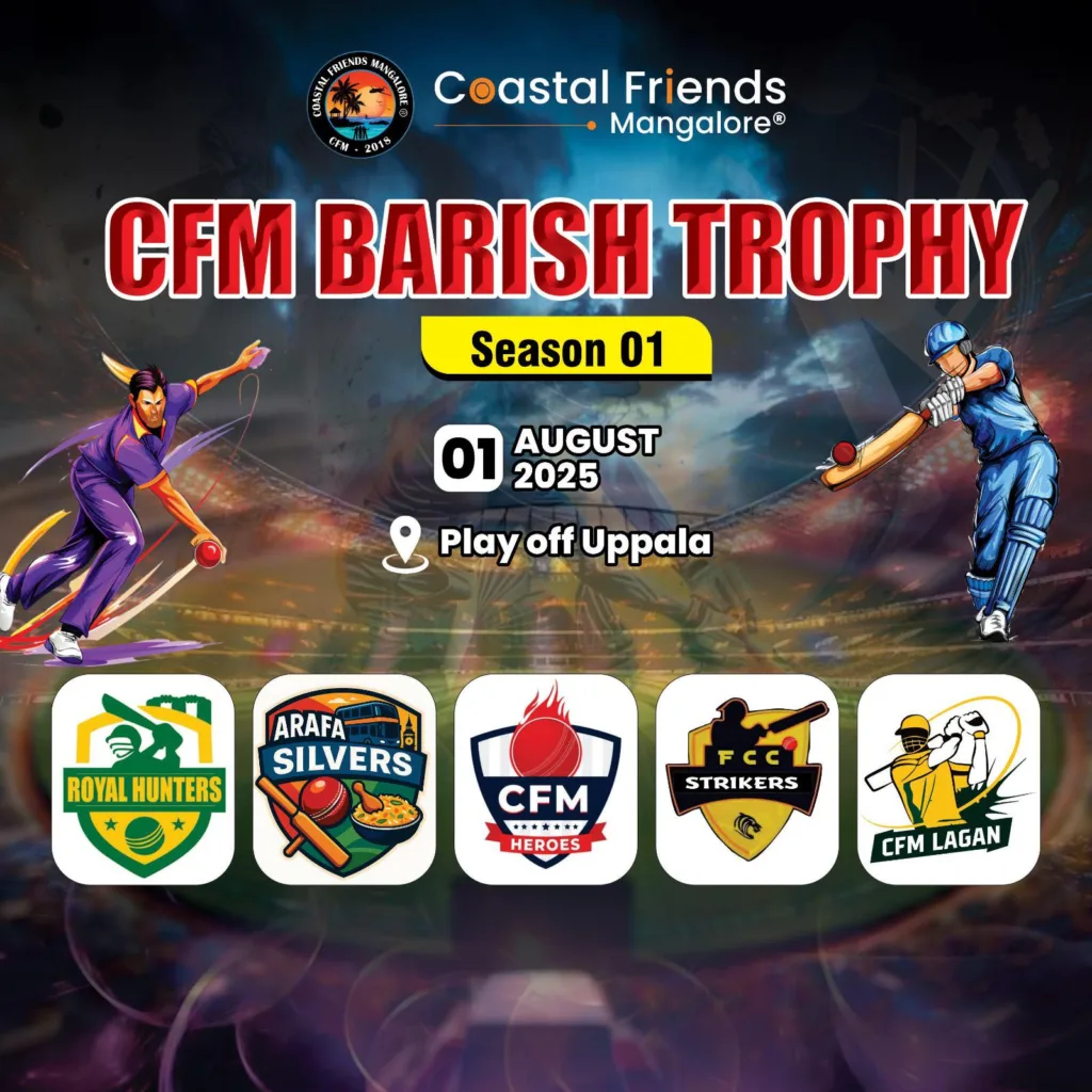 The Coastal Friends Mangalore (CFM) community successfully organized a unique and vibrant cricket tournament — by friends, for friends, and managed by friends — under the banner of CFM Barish Trophy Season 1 – 2025. The tournament was held at the Uppala Ground, Kasaragod, amidst great enthusiasm, energy, and celebration held on 01 Aug 2025